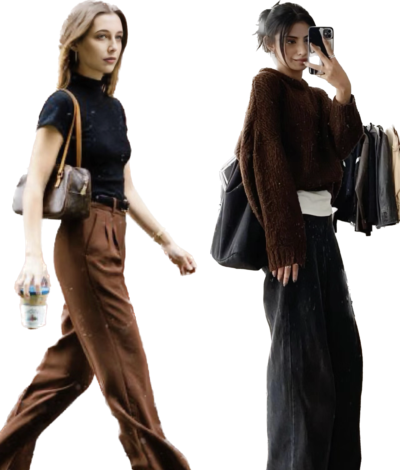 「美拉德」風格的配搭有幾個公式,100%是以全棕啡色系,大面積由不同深淺度的棕啡色作配搭。而50%是以棕啡色系再加其他色系,去作配搭而形成一個對比,為秋冬感加點色彩,例如橘紅色、藍色、綠色、黑白灰⋯。另外仲有10%主要是以小面積的棕啡色秋去作點綴效果,可以用配飾作配搭,例如手袋、頸巾、鞋或者打底衫。以下就睇睇小編搜尋的參考例子: